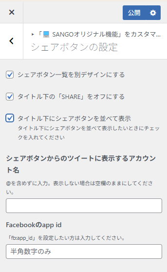 シェアボタンの設定を以下のようにする